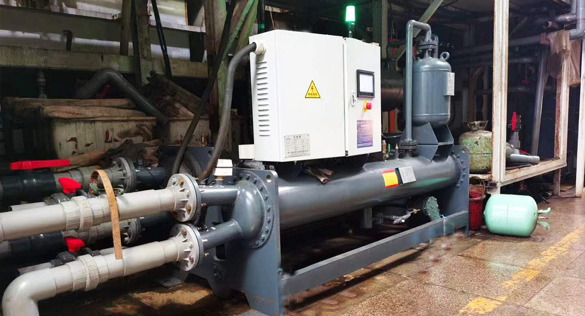 水冷冷水機利用殼管蒸發(fā)器使水與冷媒進行熱交換,冷媒系統(tǒng)在吸收水中的熱負荷,使水降溫產(chǎn)生冷水后,通過壓縮機的作用將熱量帶至殼管式冷凝器,由冷媒與水進行熱交換,使水吸收熱量后通過水管將熱量帶出外部散失。